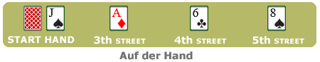 Jeder Spieler erhält nochmal eine weitere offene Karte, die Fifth Street. Wieder beginnt der Spieler mit den höchsten offenen Karten.