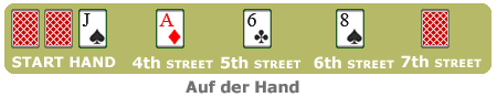 Jeder Spieler erhält nochmal eine weitere offene Karte, die Sixth Street. Wieder beginnt der Spieler mit den höchsten offenen Karten.
