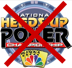 NBC cancelt National Heads-Up Poker Championship. Black Friday zieht weiter seine Kreise … Jetzt hat die US-amerikanische National Broadcasting Company (NBC) das Einladungsturnier National Heads-Up Poker Championship aus dem Programm genommen. Das seit 2005 alljährlich stattfindende Event, zu dem Celebrities aus der Pokerwelt und dem Showbusiness antraten, war im Wesentlichen von Full Tilt Poker und PokerStars gesponsort worden – Grund genug für den Sender, sich nicht die Finger an einer potentiell heißen Kartoffel verbrennen zu wollen. Immerhin ließ jetzt Senior Sports Director Adam Freifeld das Las Vegas Review-Journal wissen, die NBC werde ihr Pokerprogramm weiter im Auge behalten, und möglicherweise komme die Heads-up Championship 2013 zurück. Zuletzt wurde sie von Eric Seidel gewonnen.