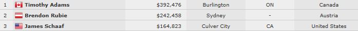 Im Final Heads-up saßen sich Timothy Adams und Brendon Rubie gegenüber. Das Ace on the River zementierte abschließend, was sich in der letzten Hand schon abgezeichnet hatte, als Brendon mit KQ All-in gegangen war und sein Gegner AQ aufdeckte.